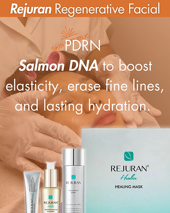 Rejuran Regenerative Facial's breakthrough PDRN technology to reboot, regenerate, and visibly transform your skin. Clinically proven to boost collagen, heal skin damage, and deliver lasting hydration—this is the viral reset your skin deserves. Get firmer, smoother, radiant skin that turns heads, powered by the gold standard in K-beauty rejuvenation.